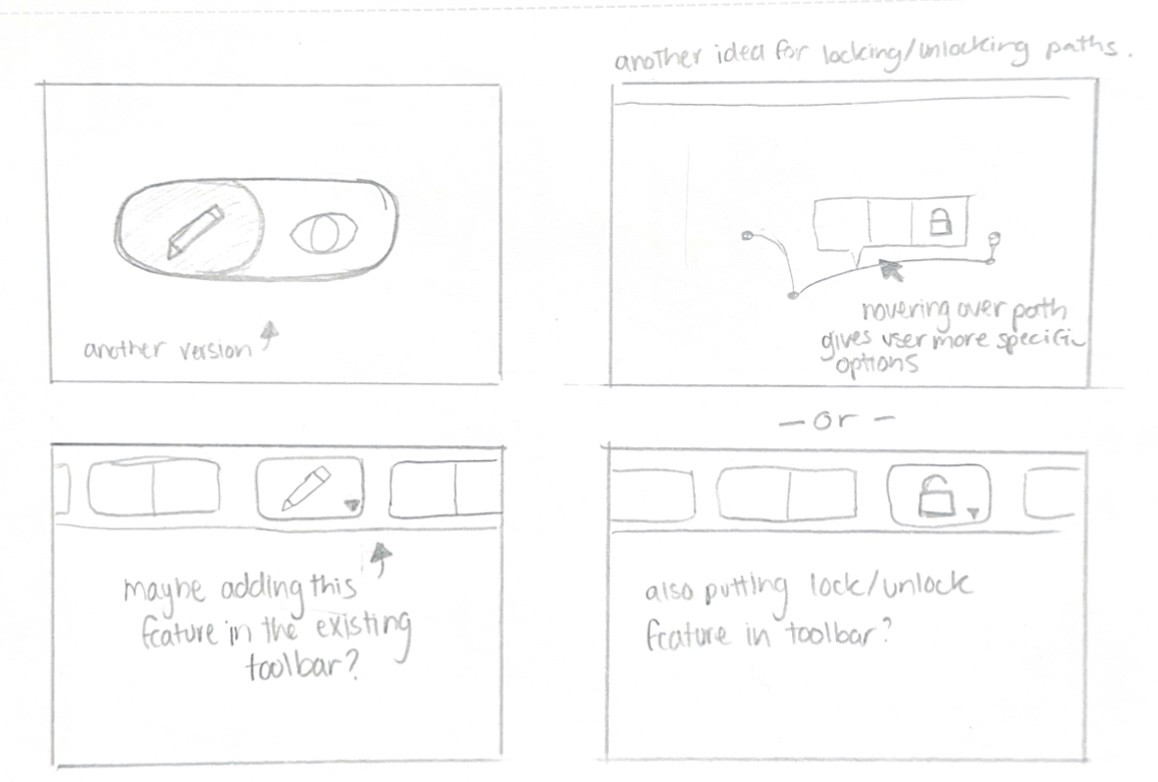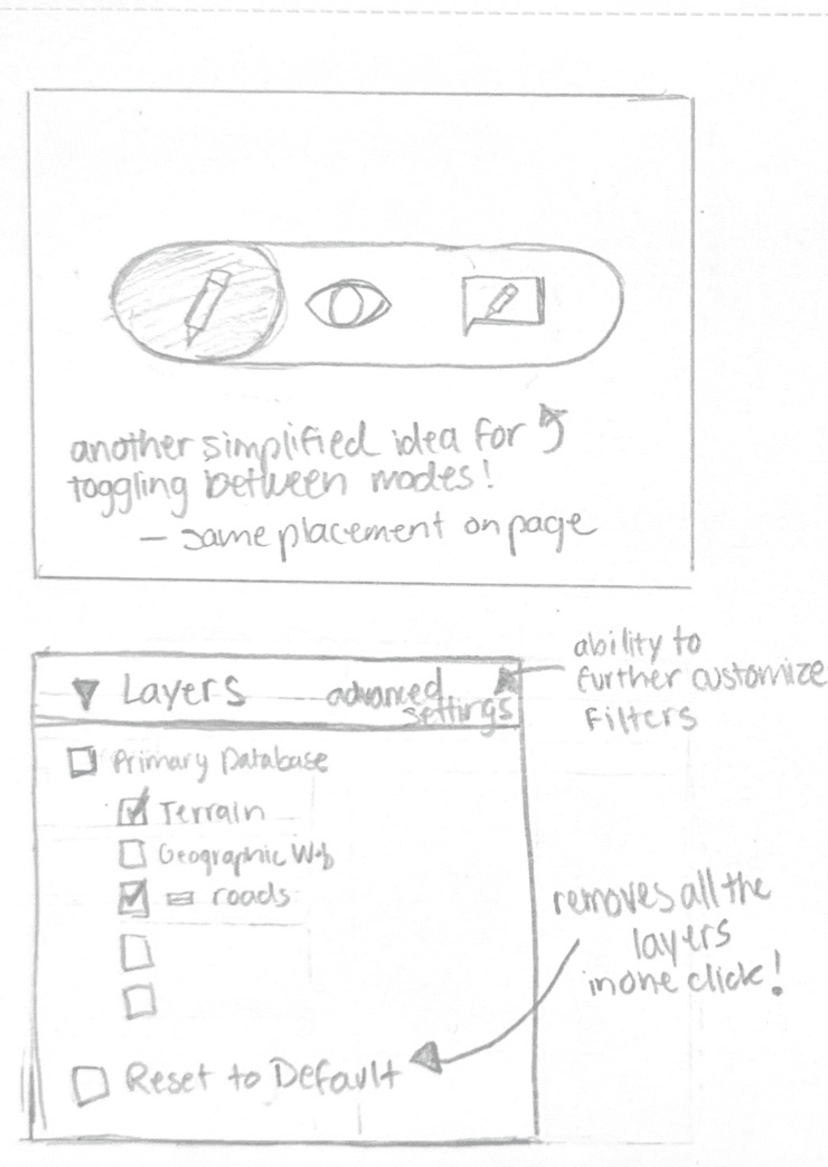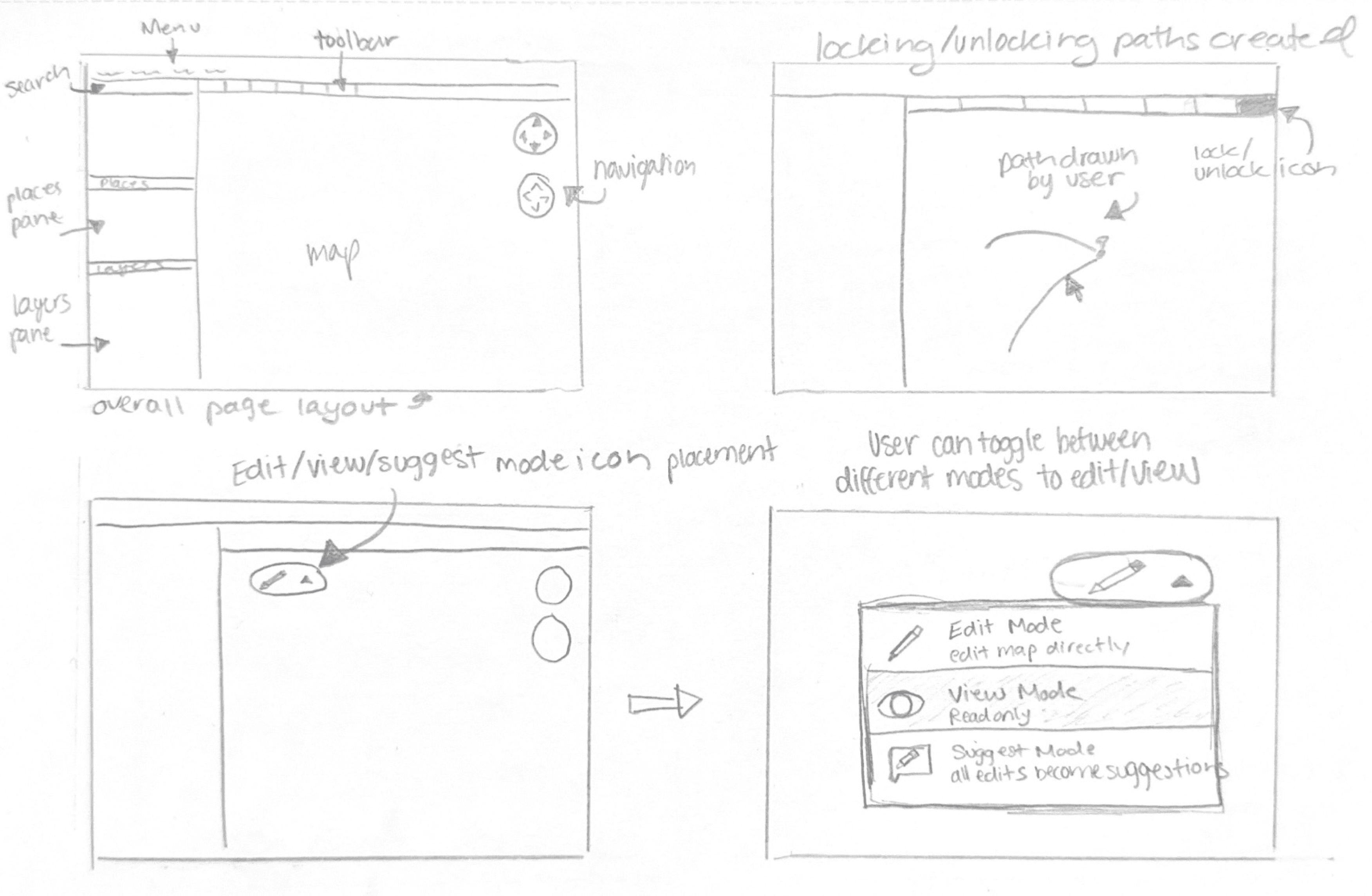 Addressing our stakeholder’s point of accidentally deleting paths, we thought it would be helpful to integrate a feature similar to one that you would see in Google Doc. This feature allows a user to change the mode of their map from edit, suggest, and view.