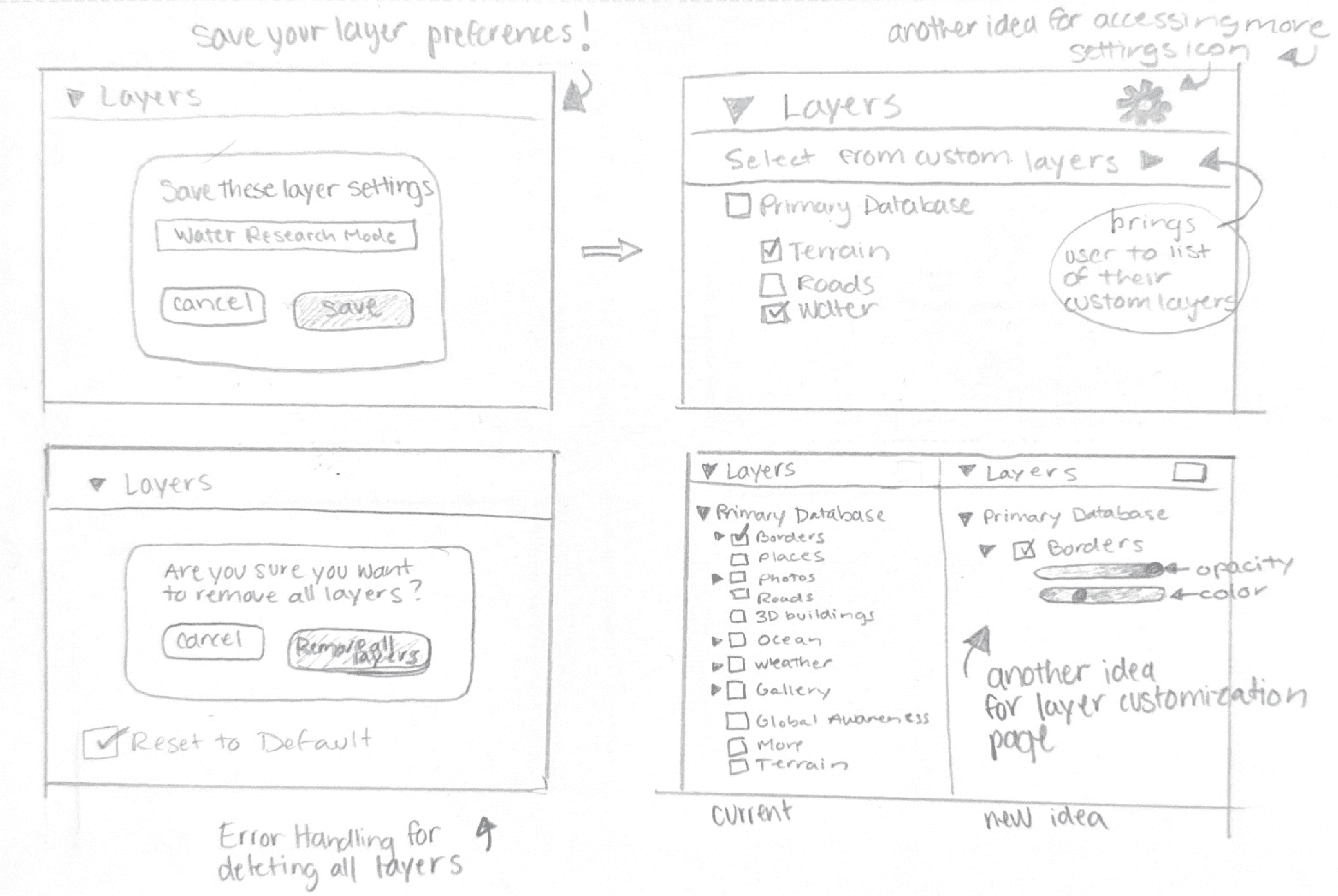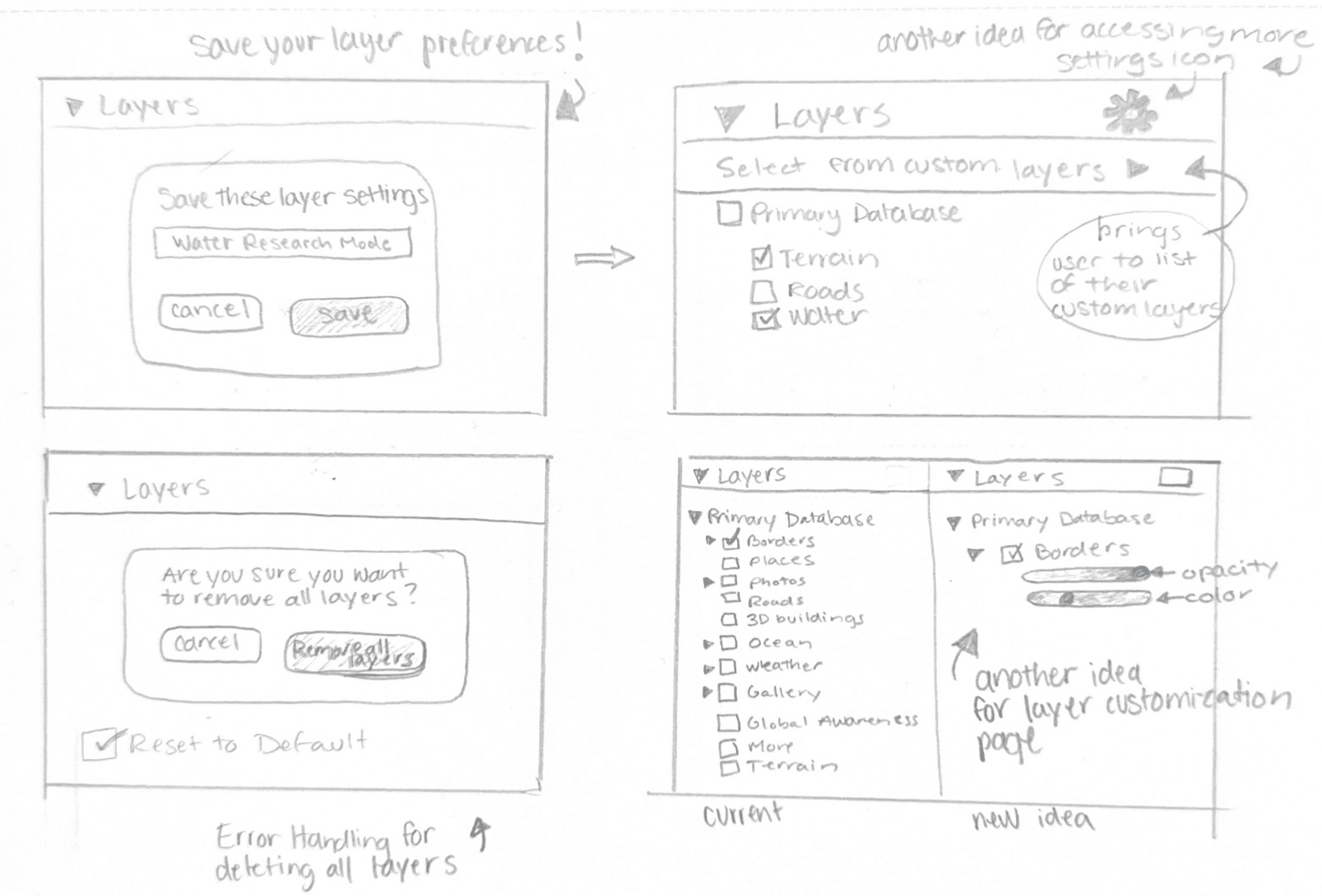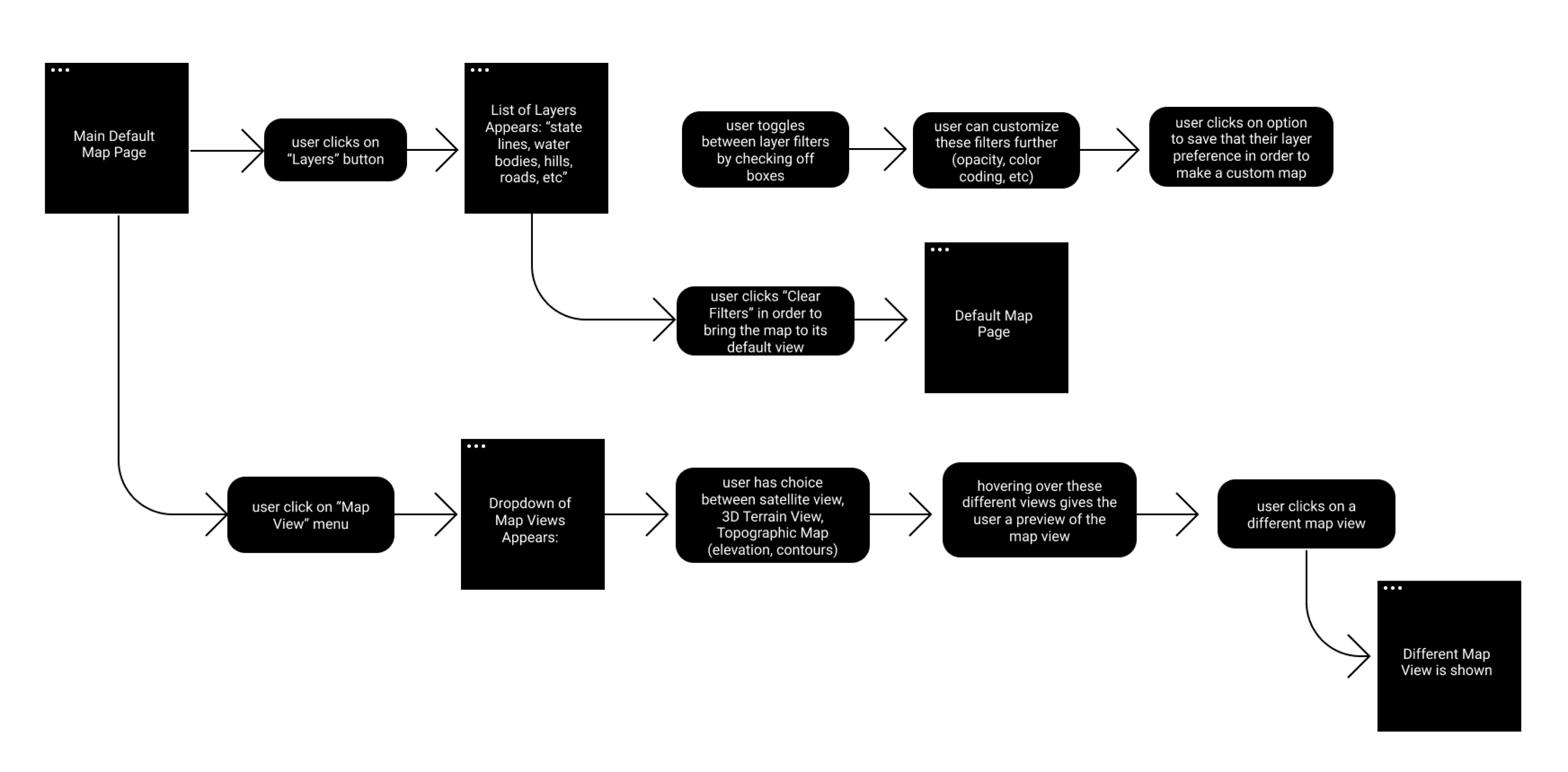 During user testing, our stakeholder liked the overall layout of our prototypes, particularly the version history feature that displays all previously mapped paths. They also preferred having the version history panel positioned on the right side of the page. Additionally, they favored the third prototype due to the added customization and accessibility of layers for viewing the map.